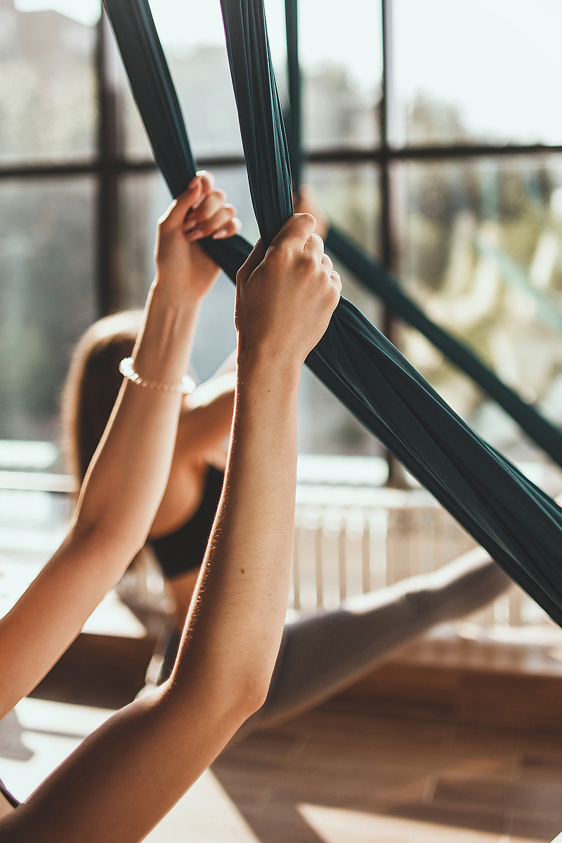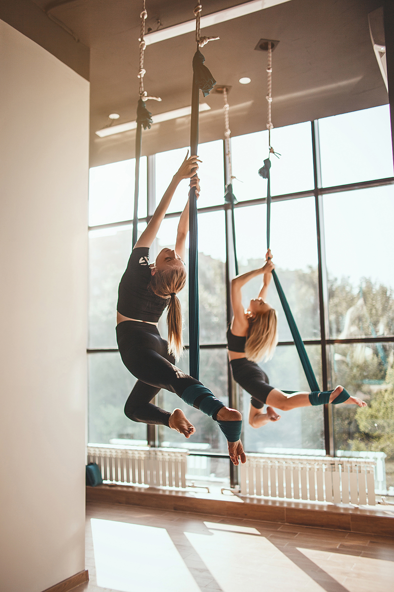 Aeroyoga тренировки - отличный способ почувствовать ощущение полета и разнообразить привычные тренировки. На тренировках выполняются перевороты, упражнения на растяжку и силу с гамаком. Незабываемое ощущения полёта, которое сопровождает на протяжении всей практики, не оставит равнодушным никого.